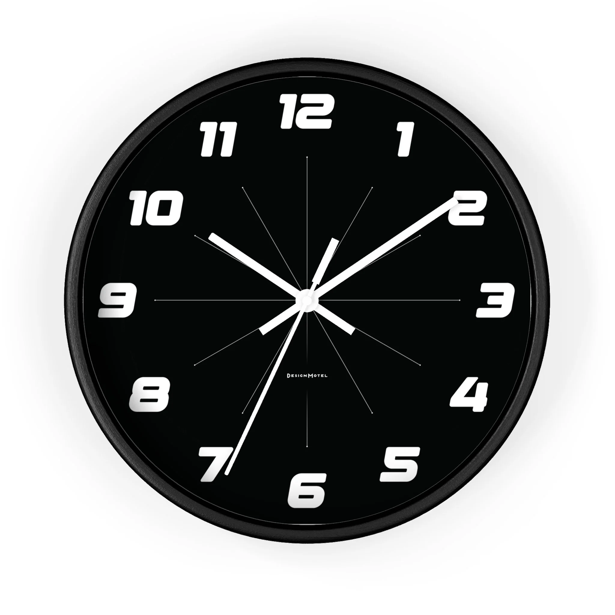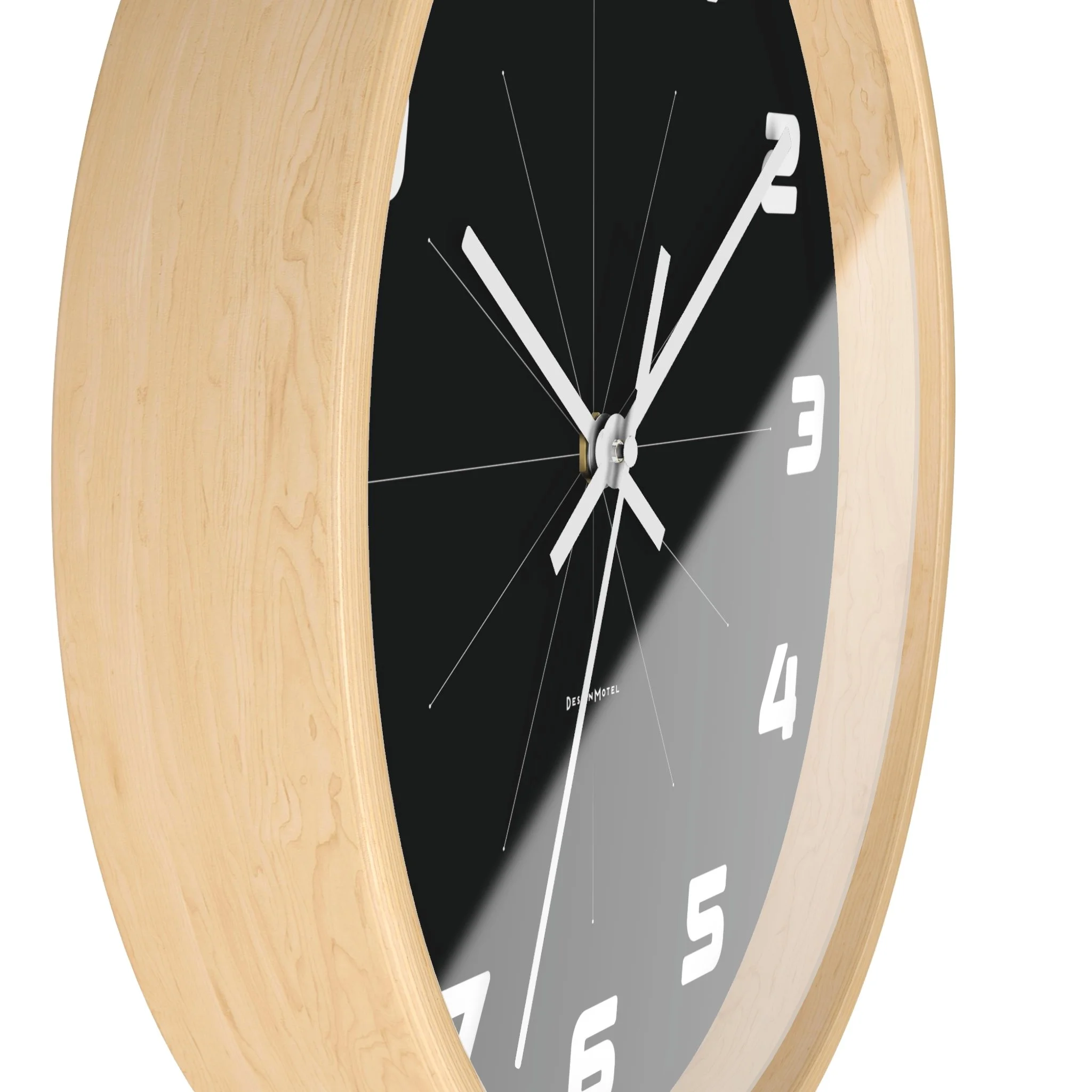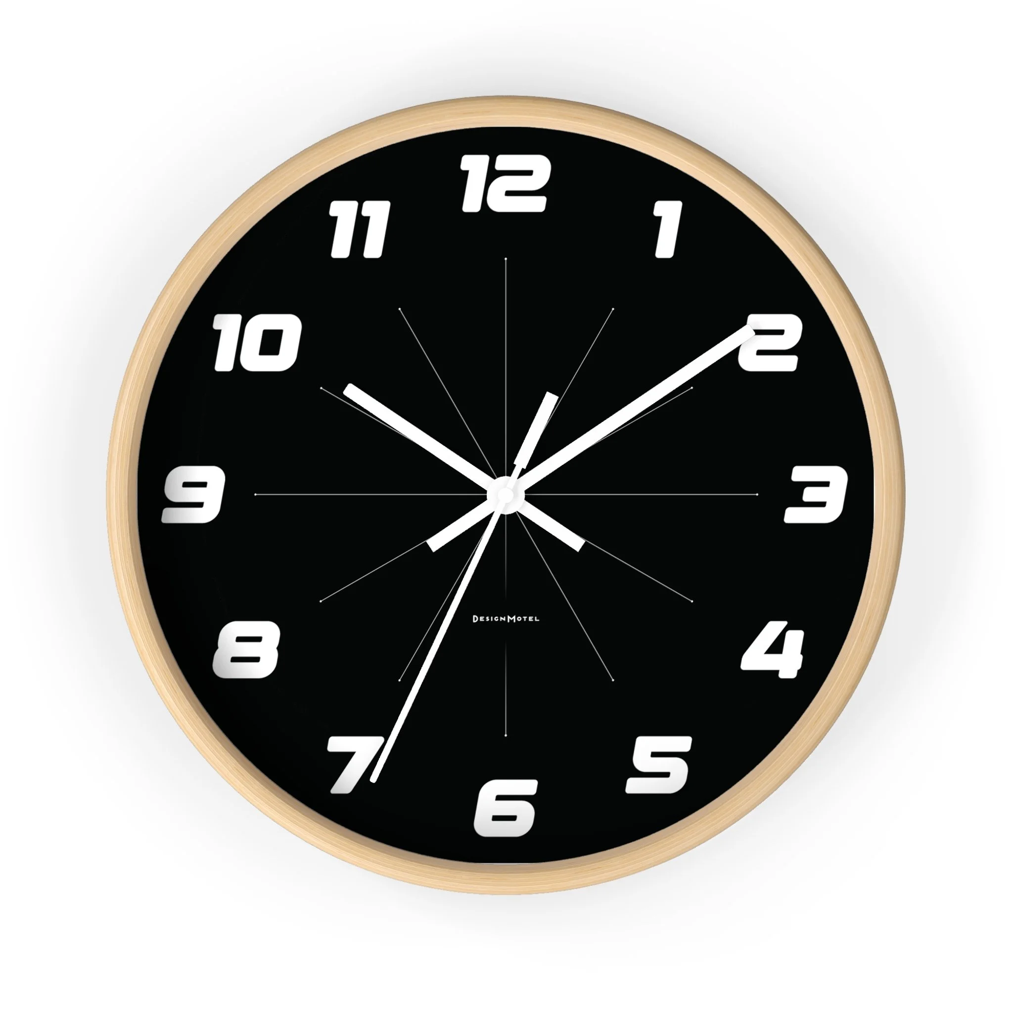 Time takes on a dynamic new look with this graphic, 10-inch clock, featuring kinetic, racing-inspired numerals and bold color. Choose from natural wood, black, or white casings.