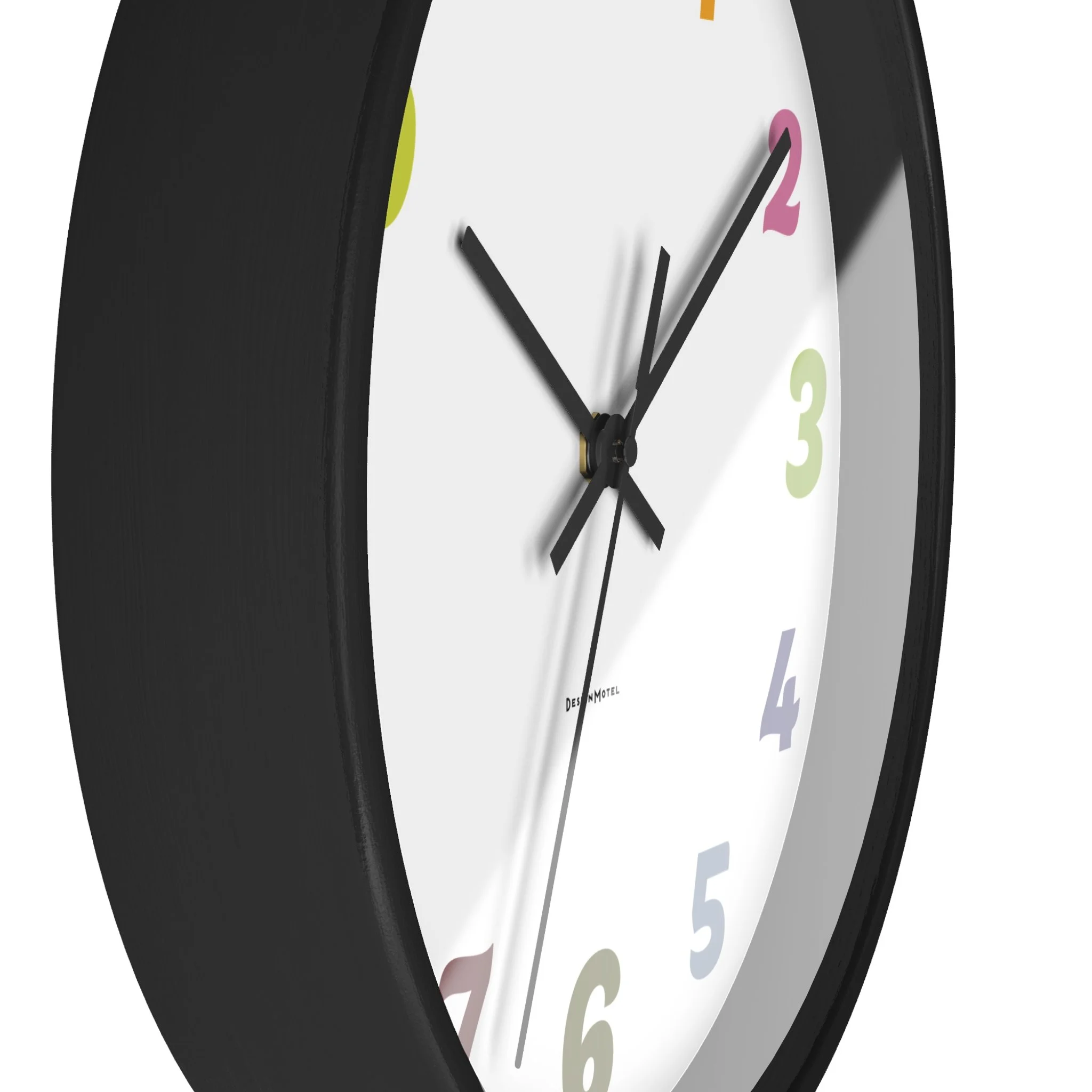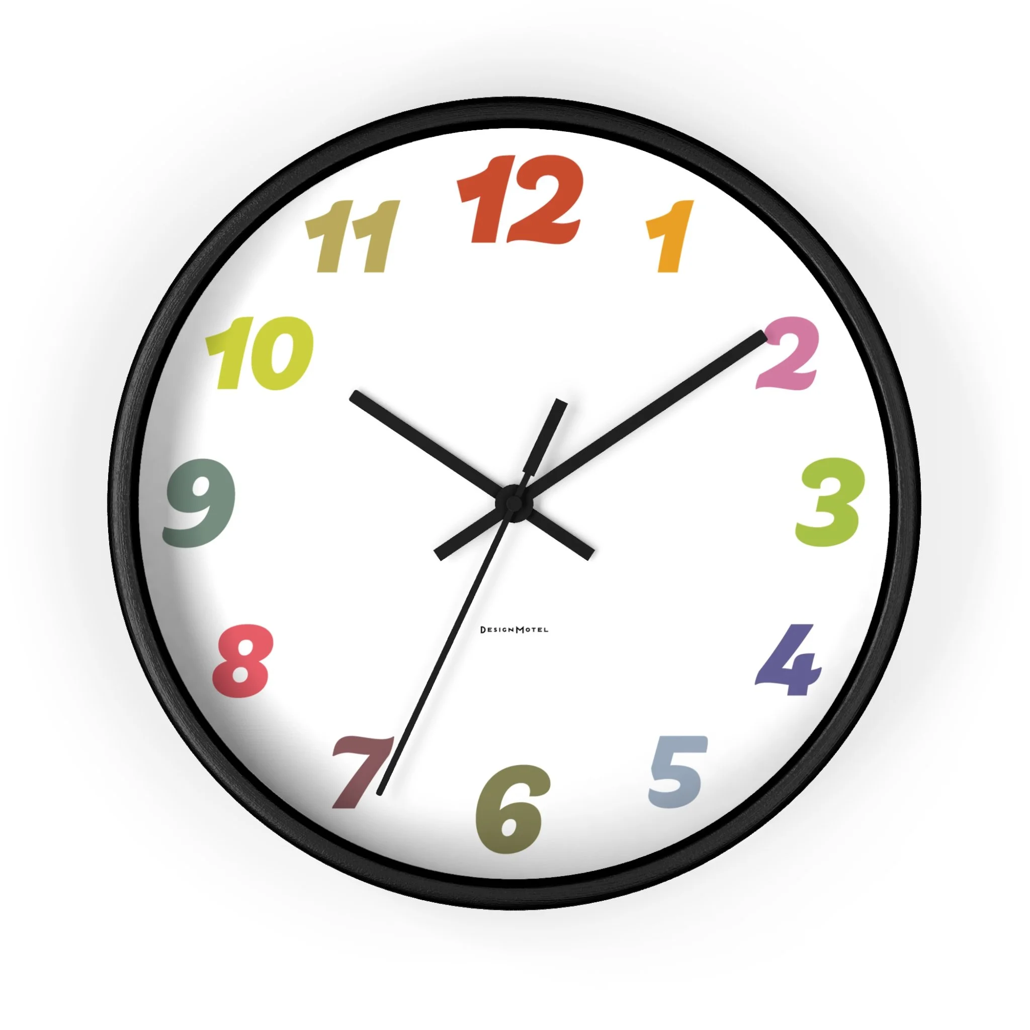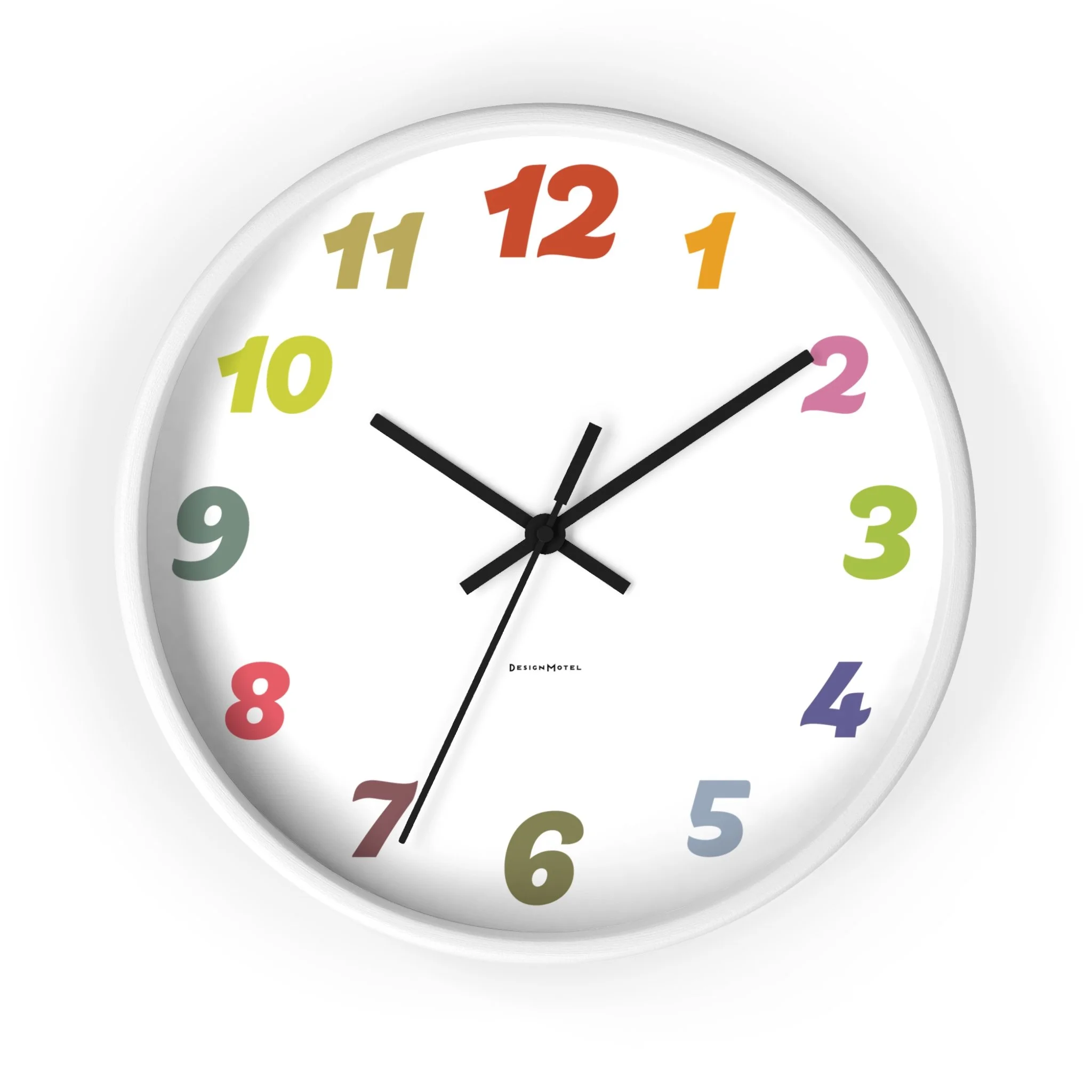 Time takes on a dynamic new look with this graphic, 10" clock, featuring modern-inspired numerals and bold color combinations.