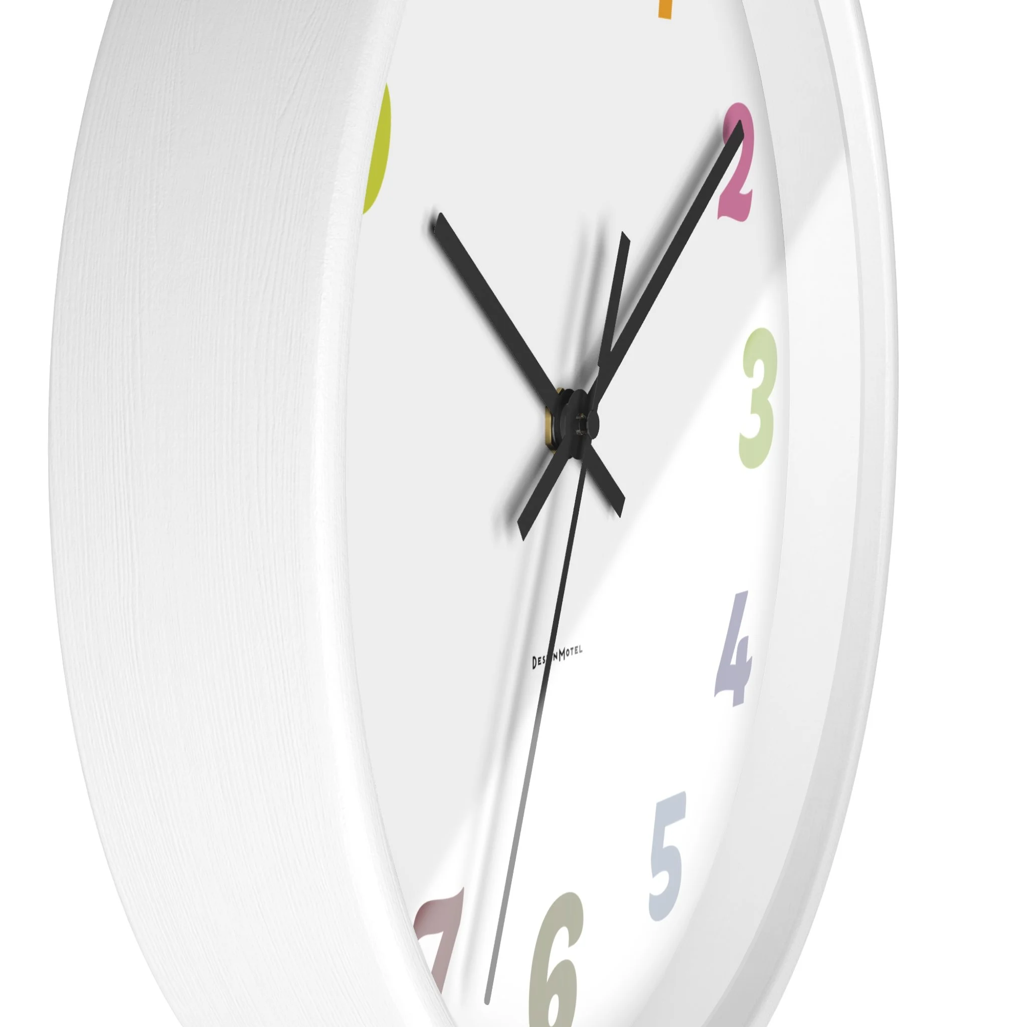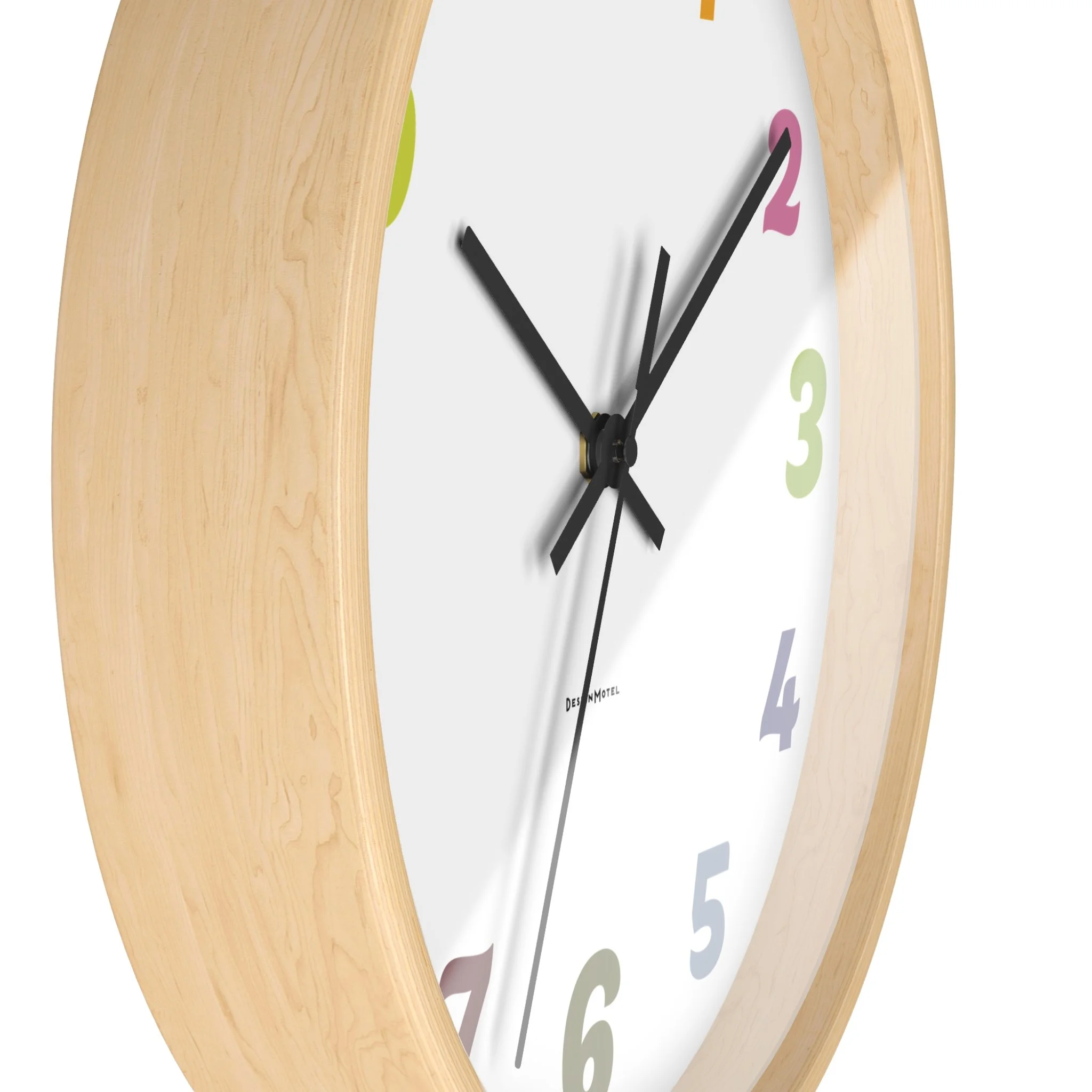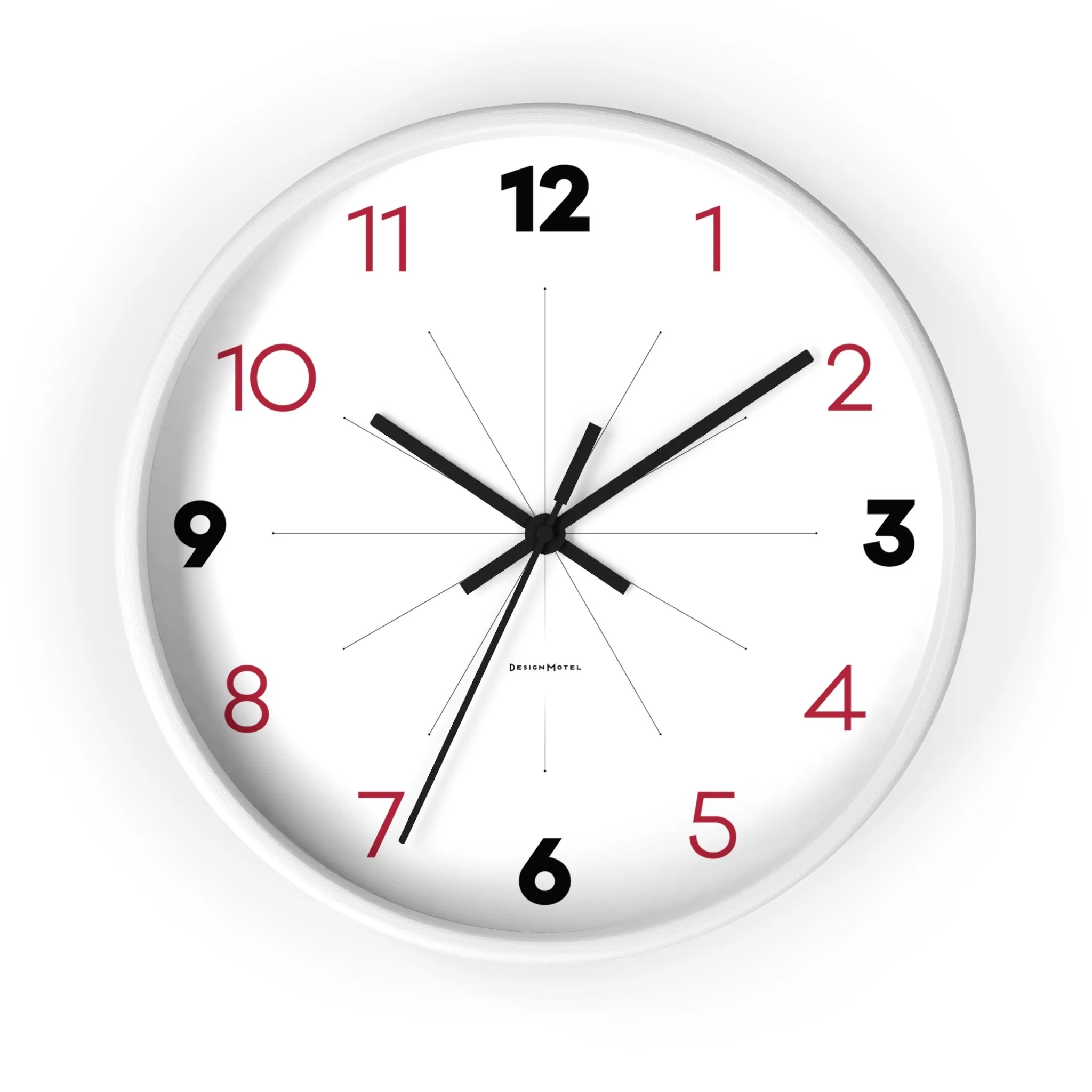Time takes on a dynamic new look with this graphic, 10" clock, featuring modern-inspired numerals and bold color combinations.