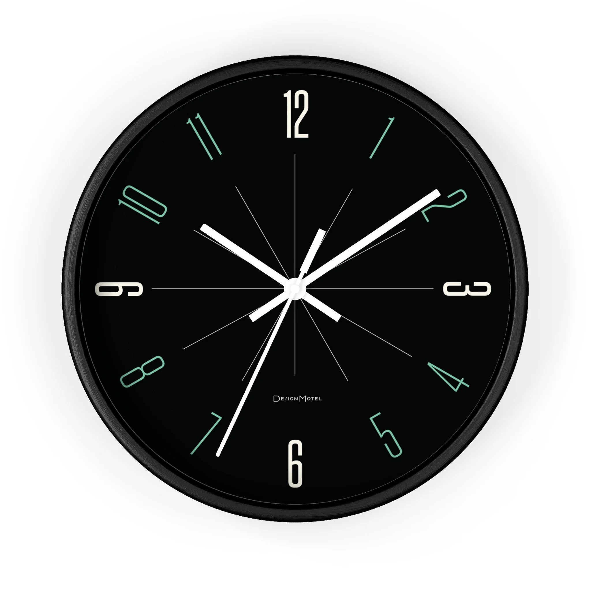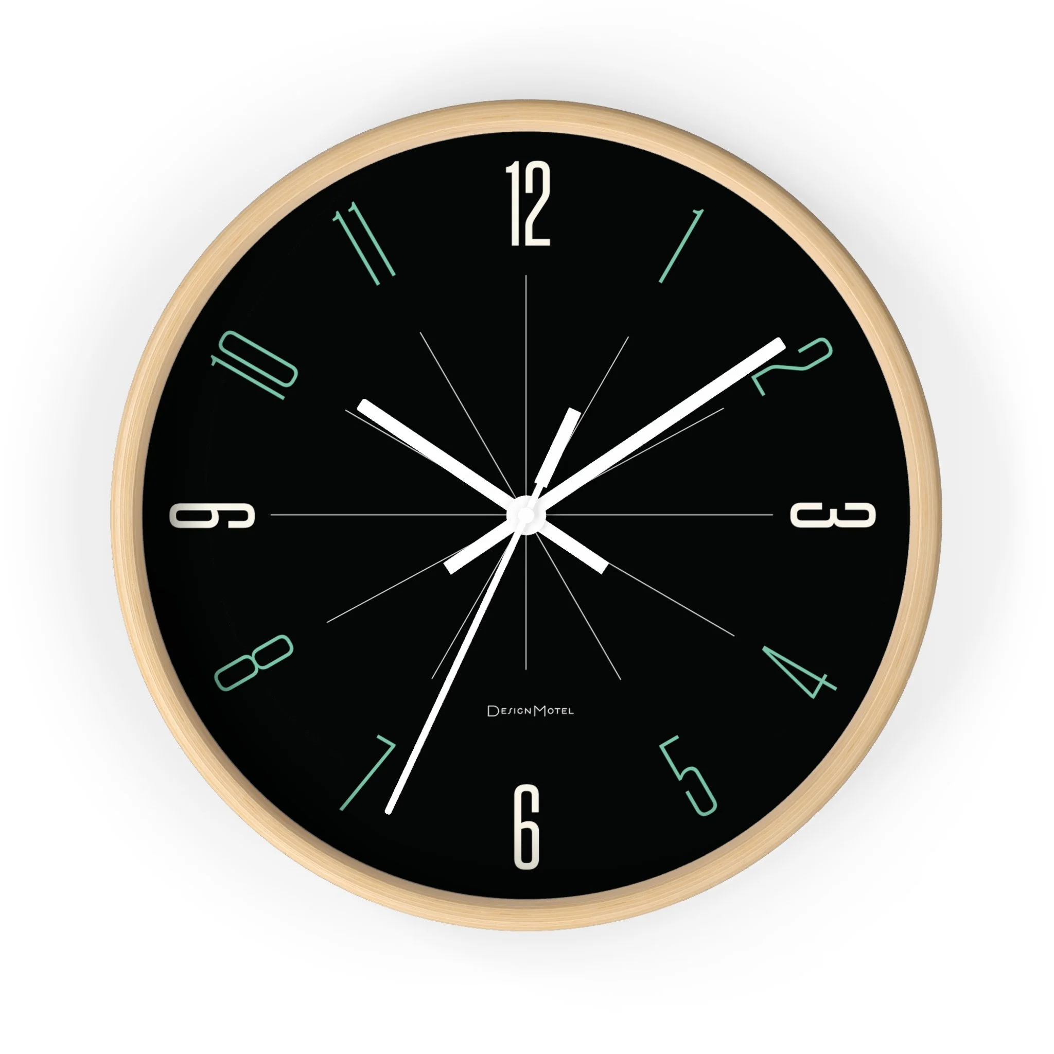 Time takes on a dynamic new look with this graphic, 10-inch clock, featuring kinetic, racing-inspired numerals and bold color. Choose from natural wood, black, or white casings.