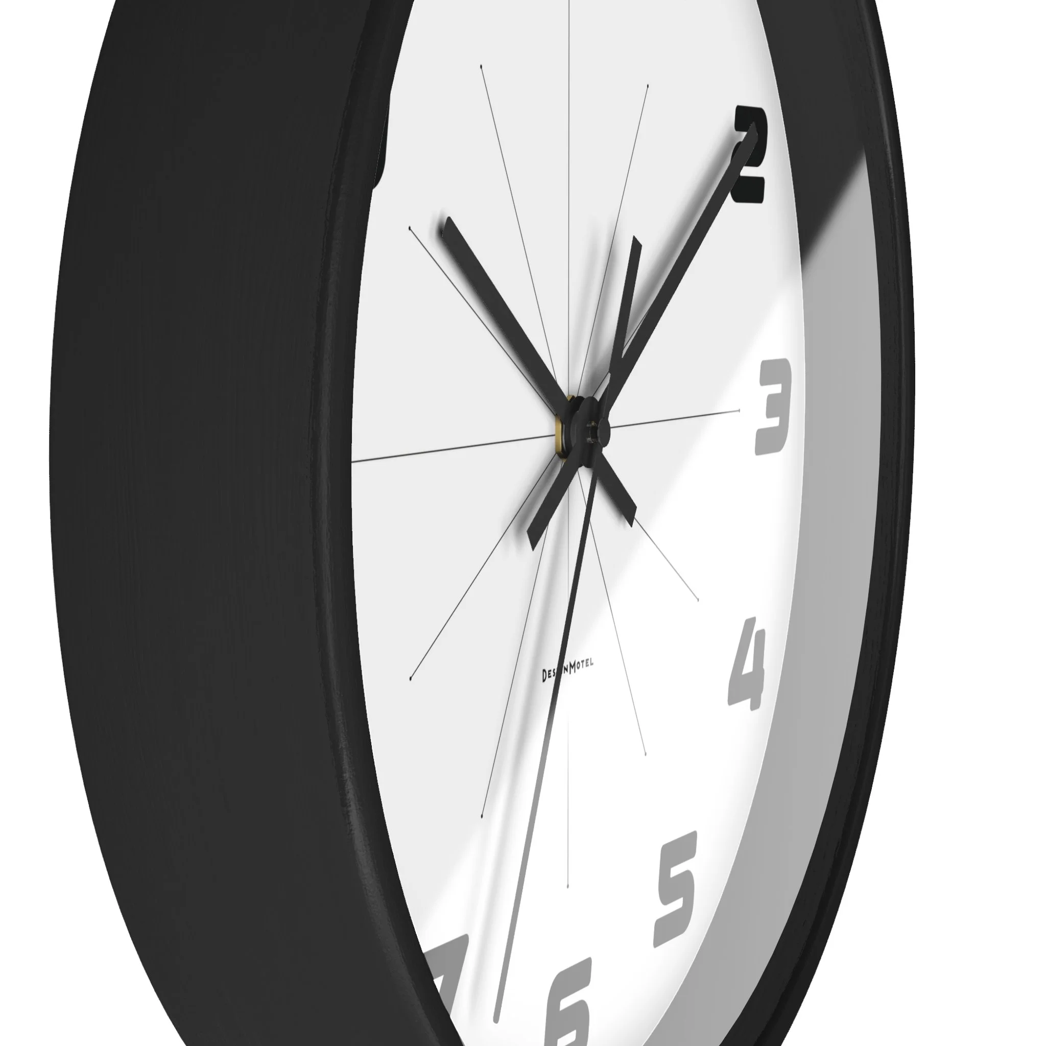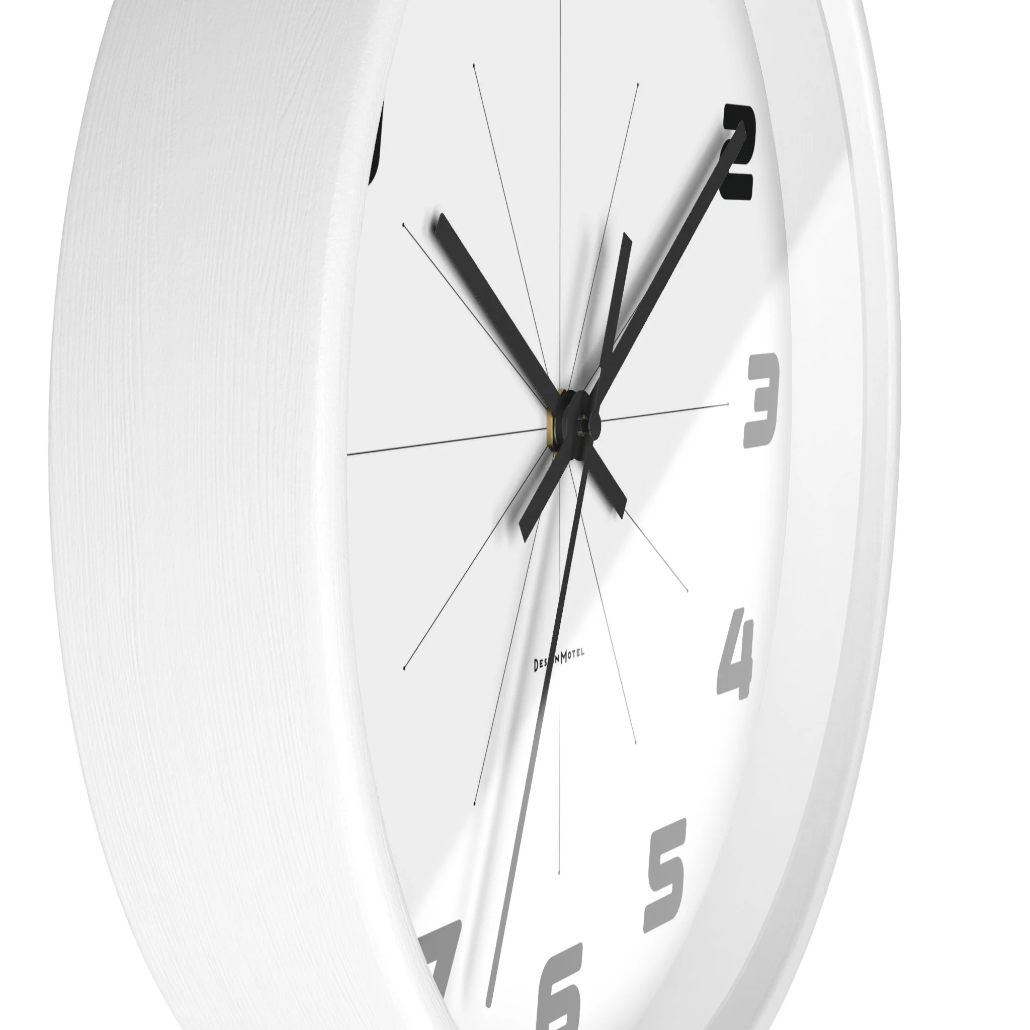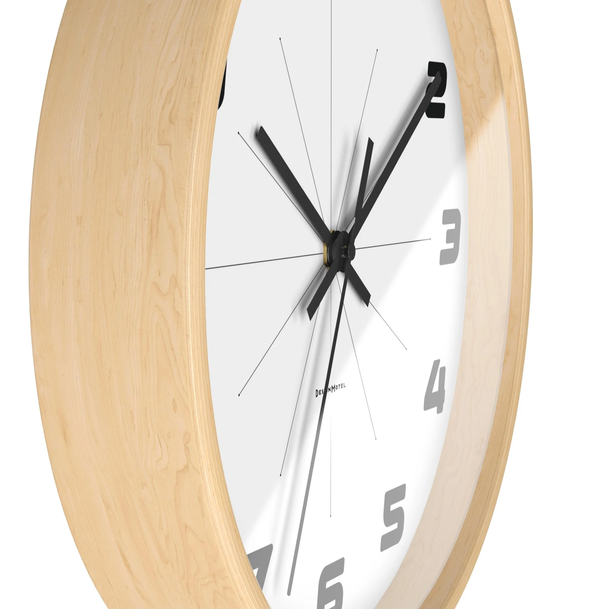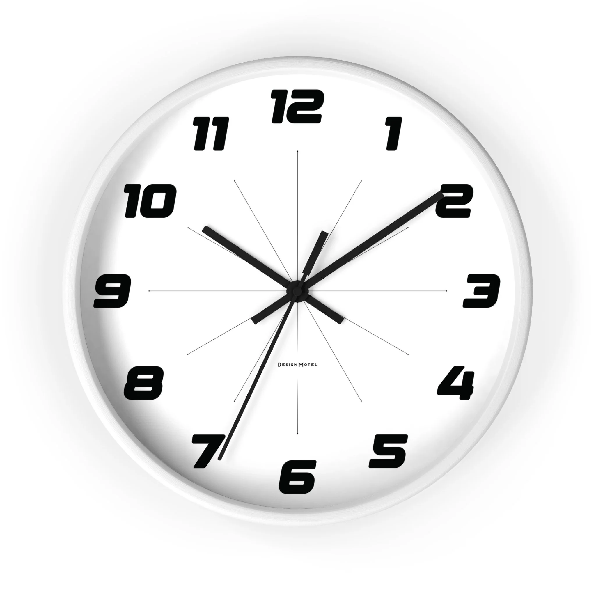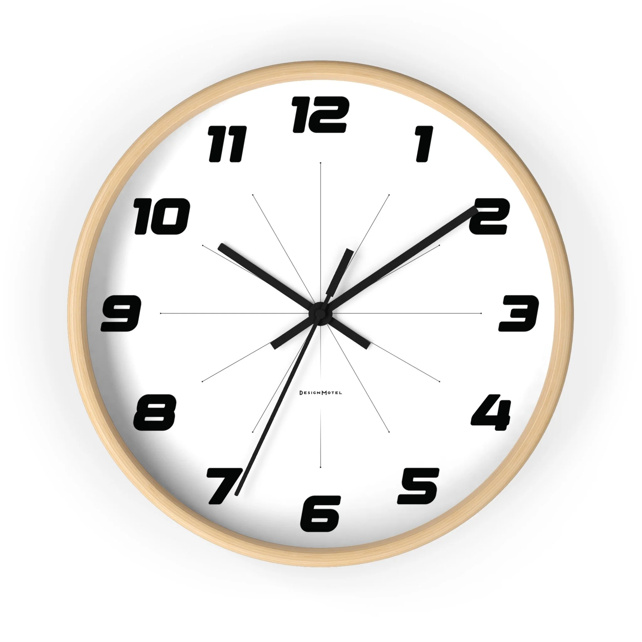 Time takes on a dynamic new look with this graphic, 10" clock, featuring kinetic, racing-inspired numerals and bold color. Choose from natural wood, black, or white casings.