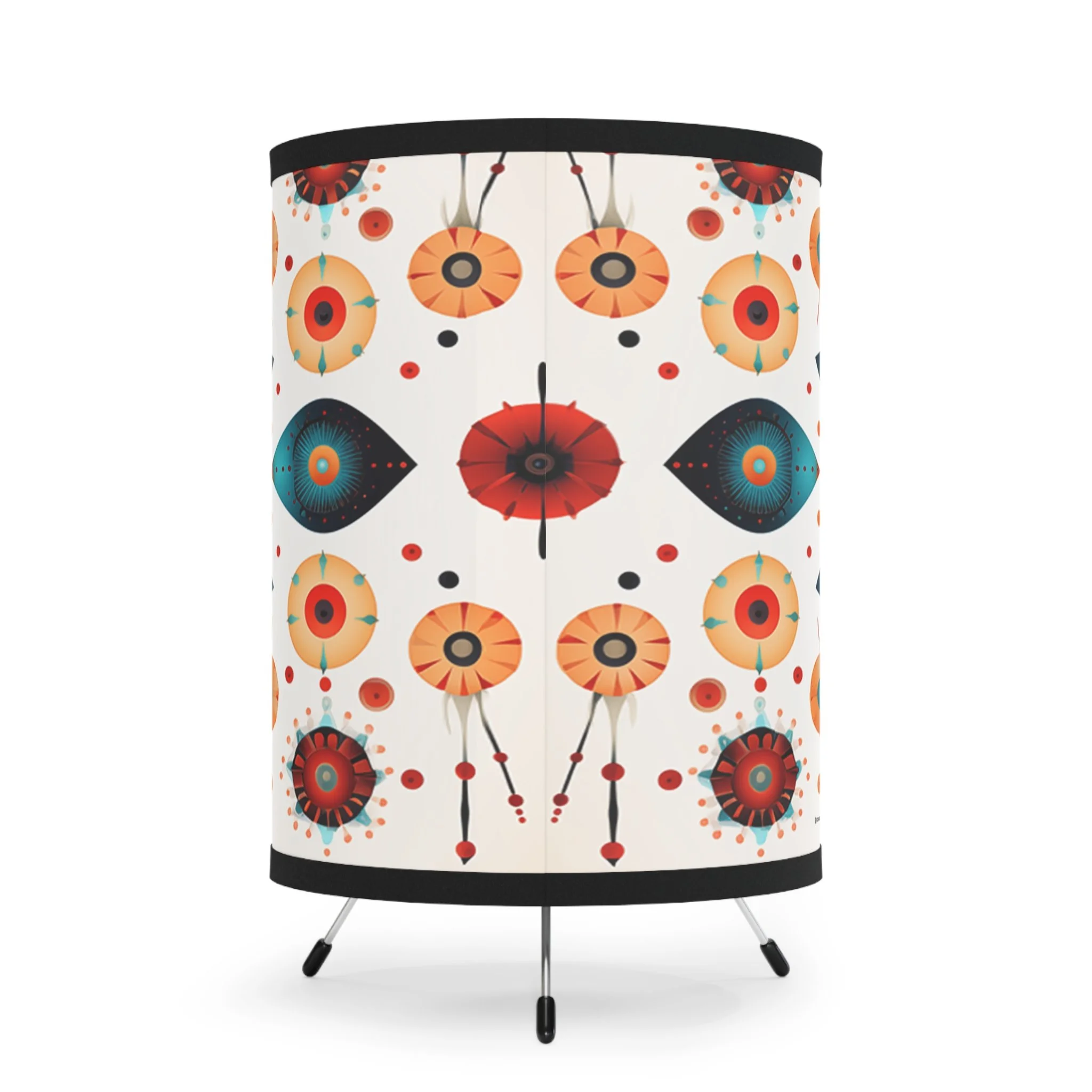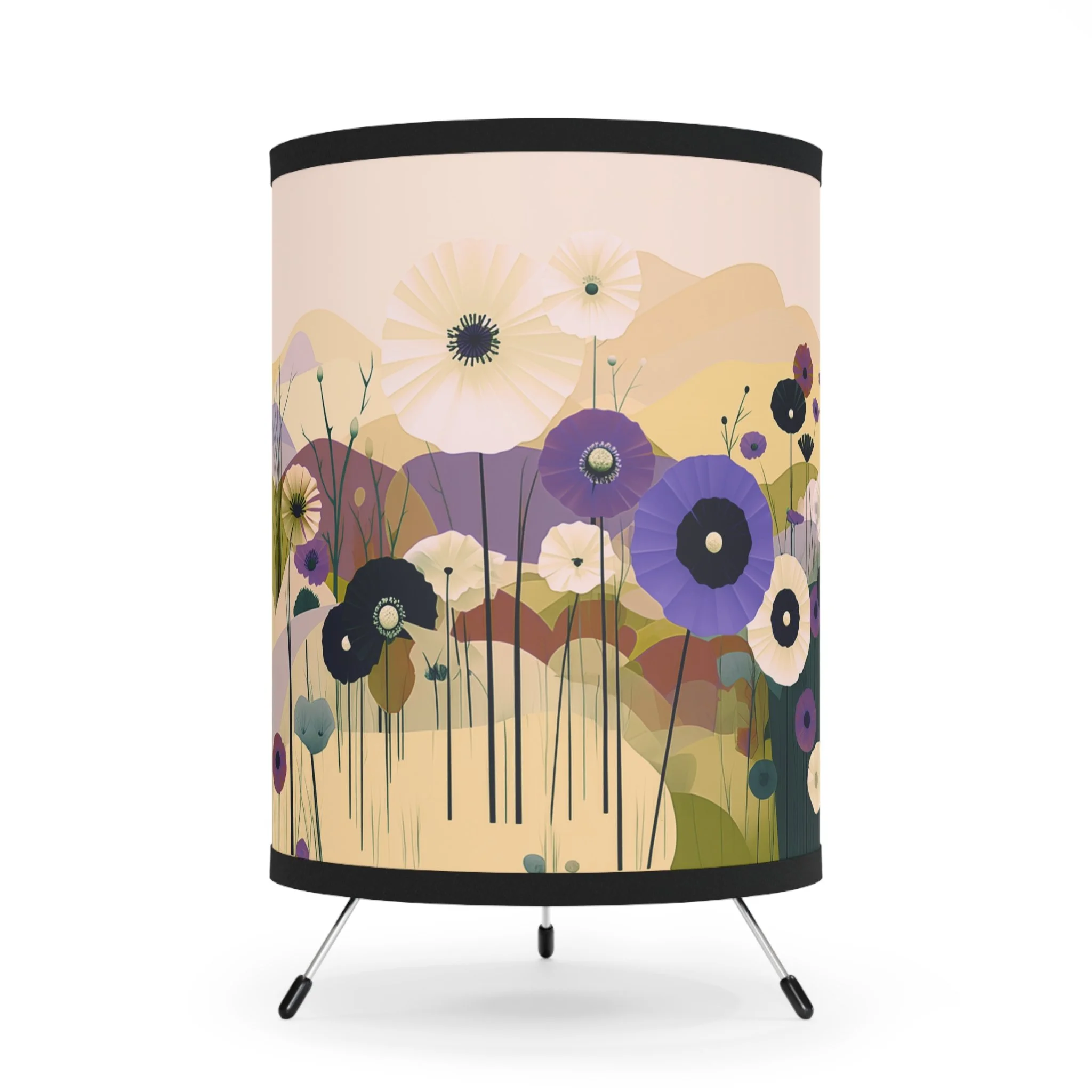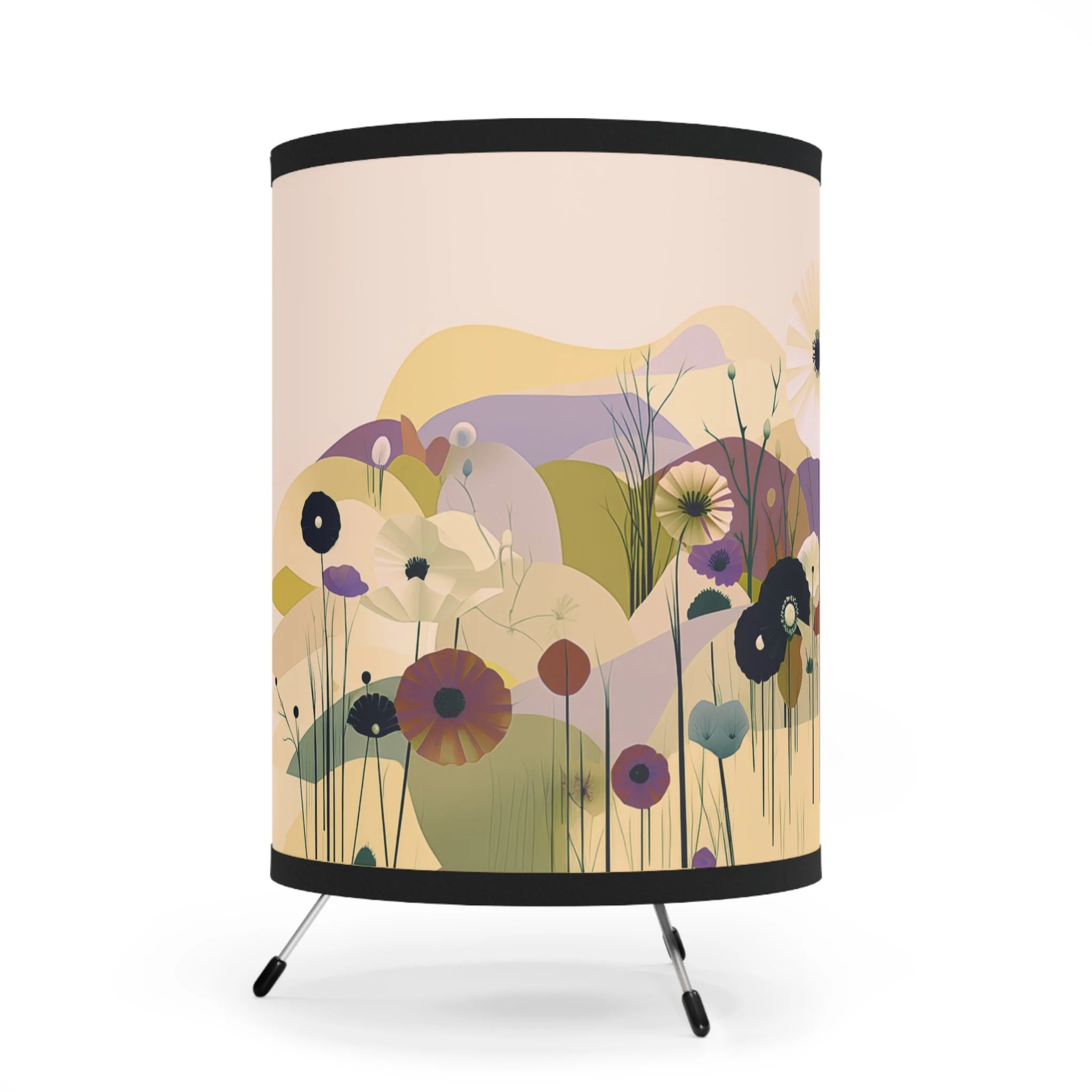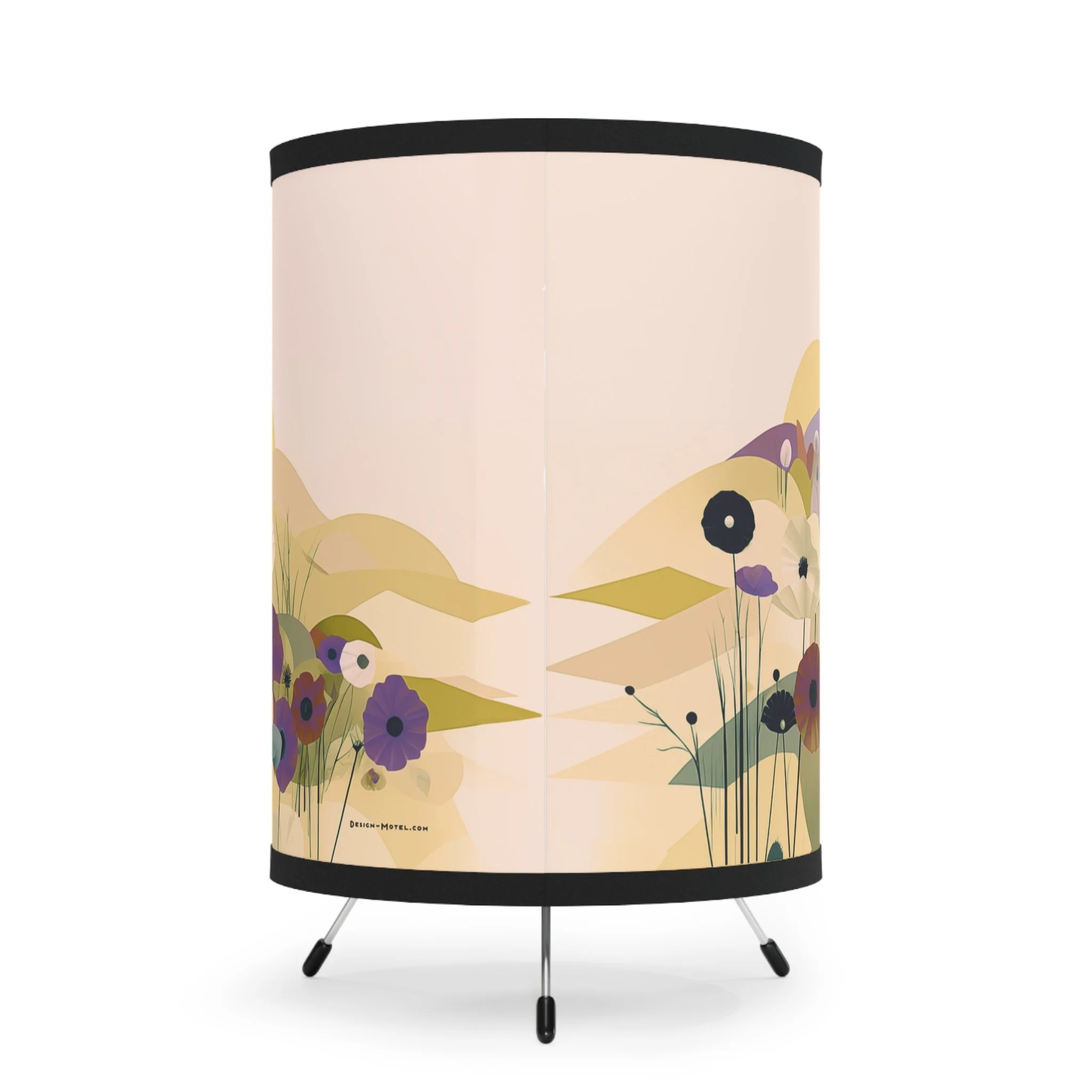 Add modern art and warm ambiance to any room with our tripod tabletop lamp featuring exclusive Design Motel artwork.