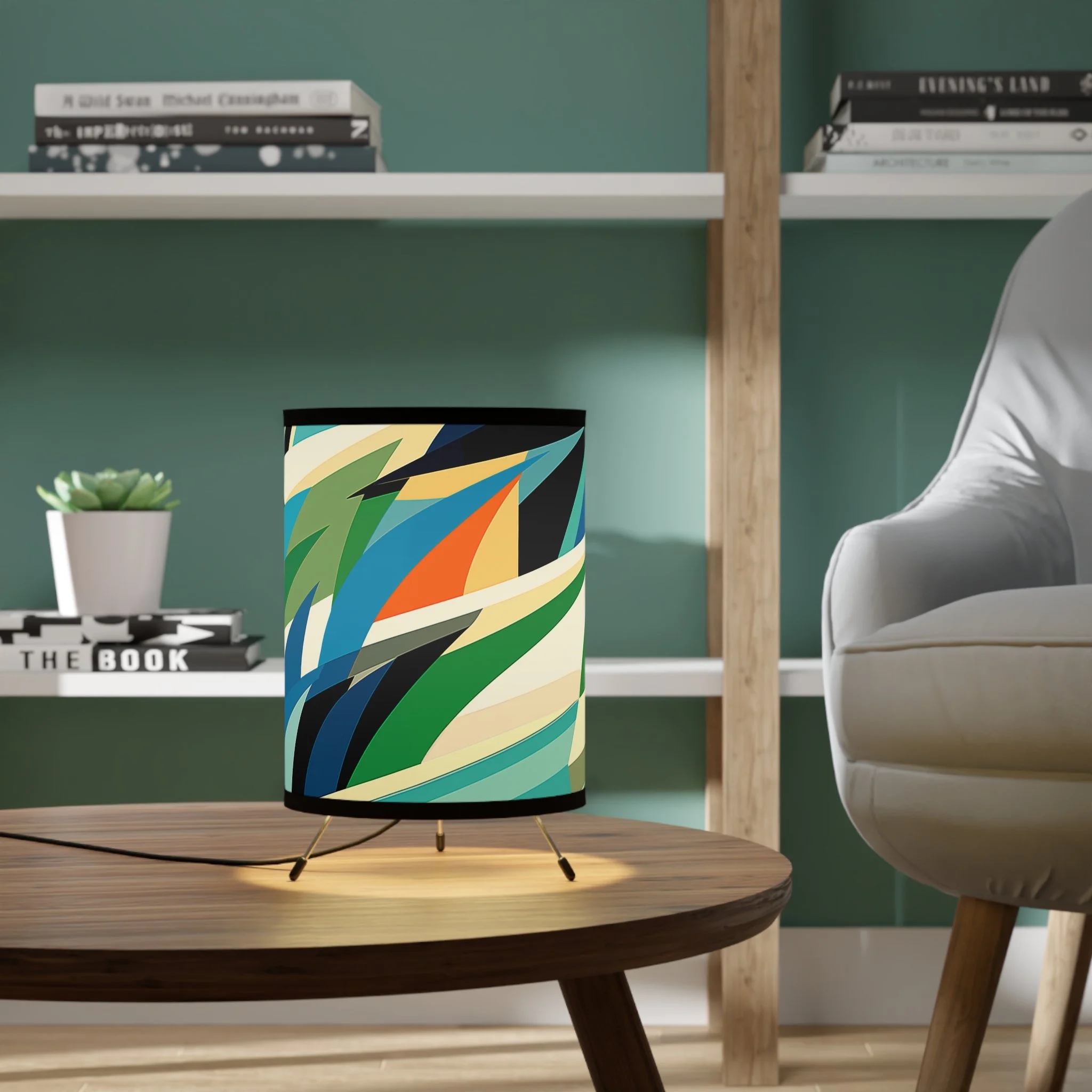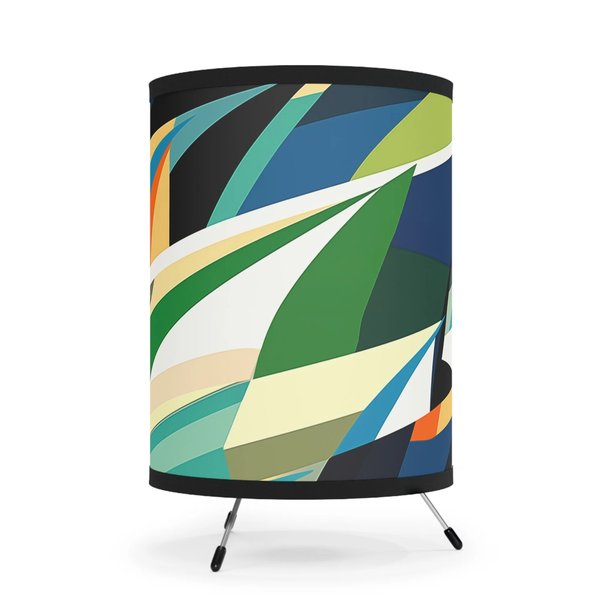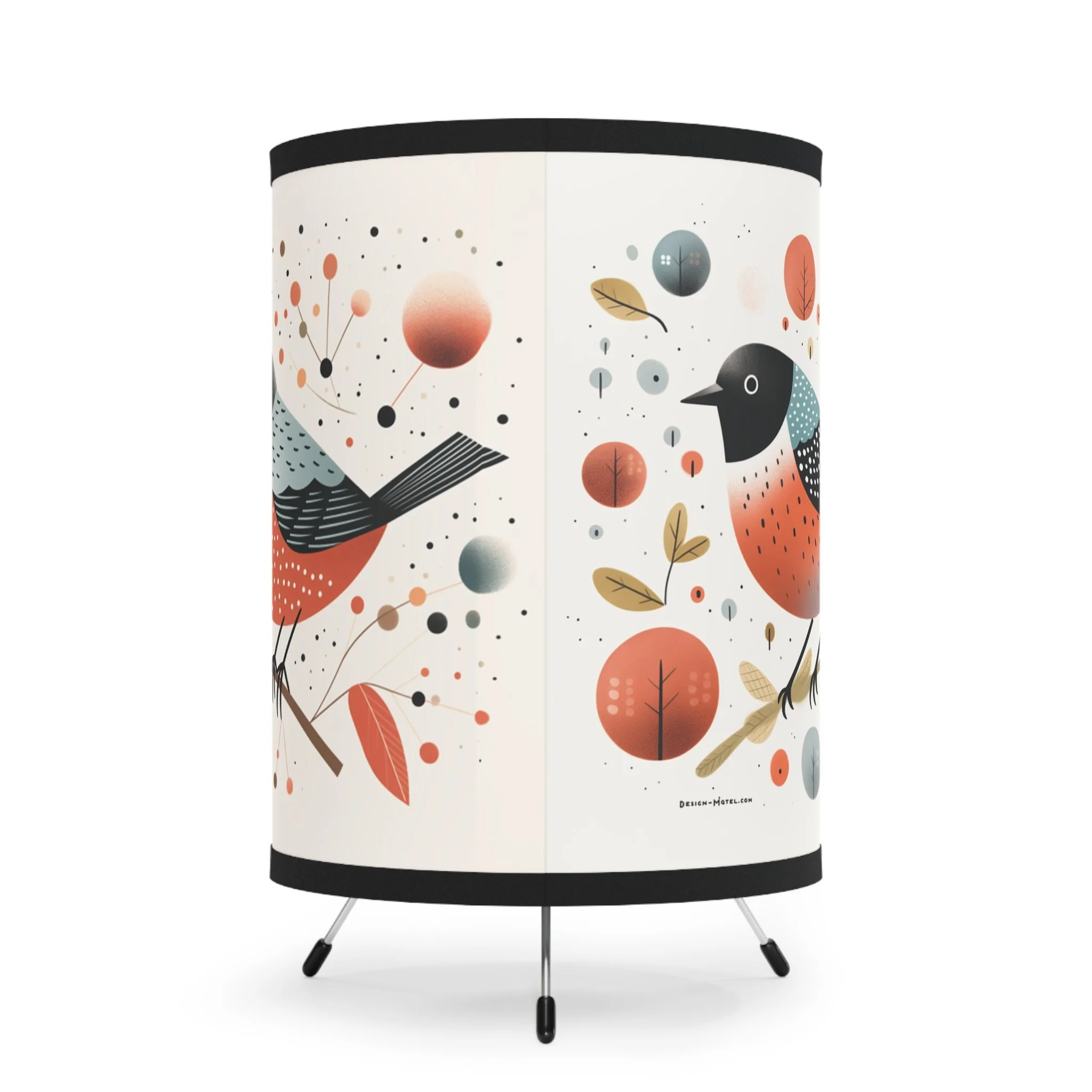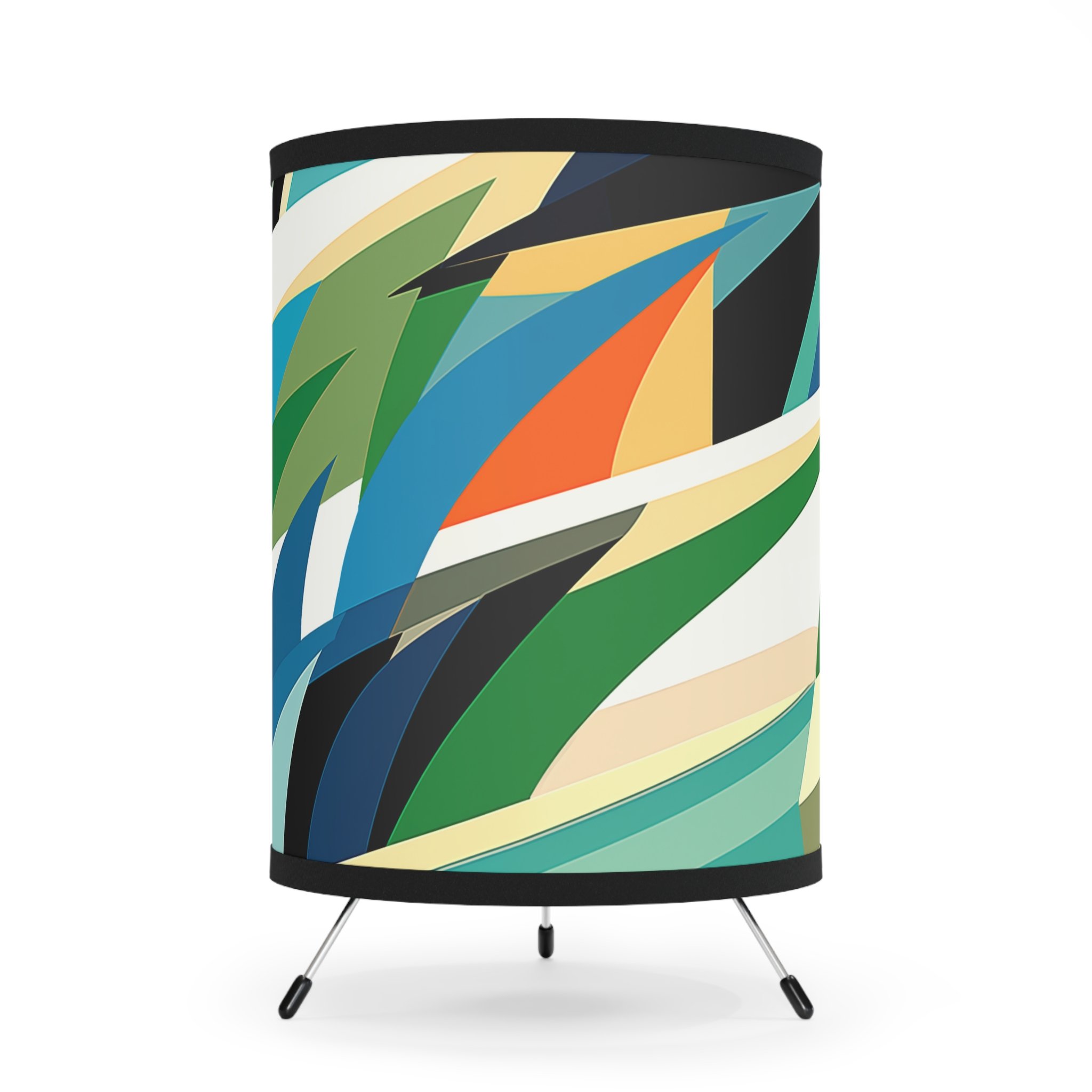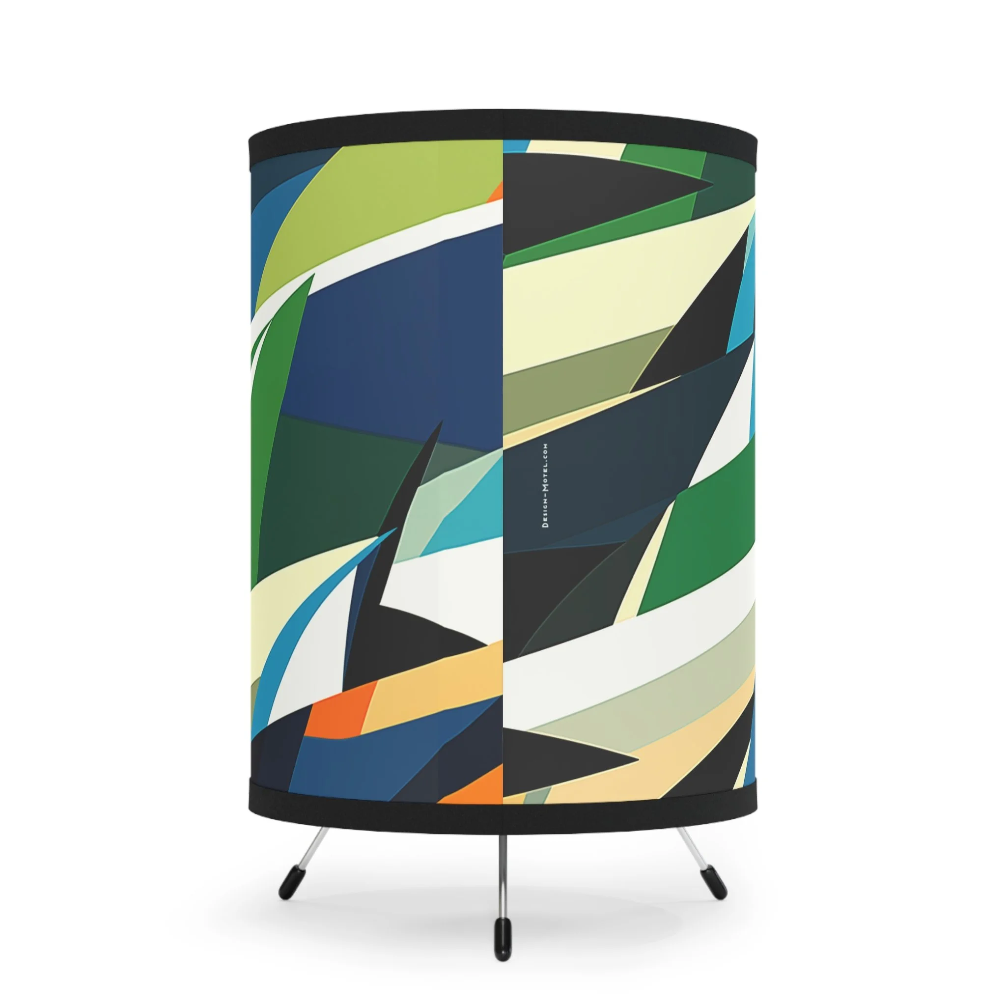Add modern art and warm ambiance to any room with our tripod tabletop lamp featuring exclusive Design Motel artwork.